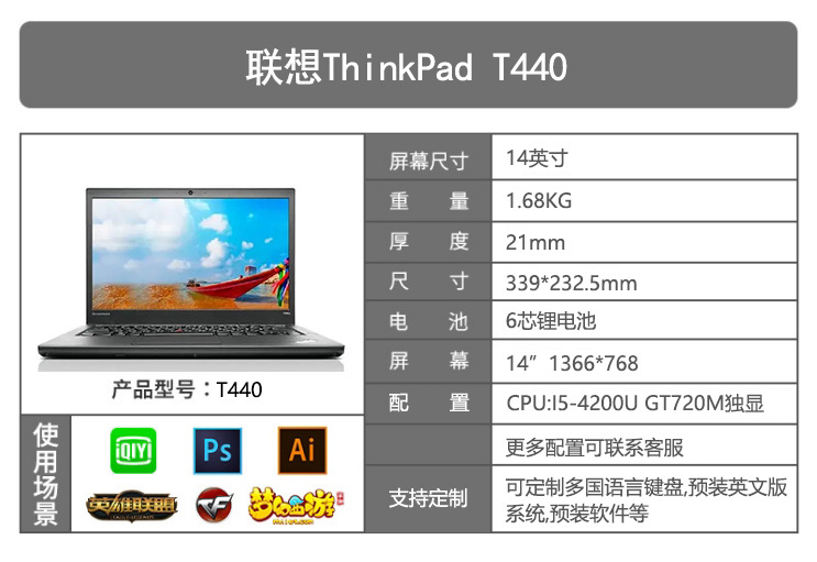 Cross-border Hot Sale 14 Inch T440 4 Generation Laptop Wholesale Core I5 Office $267,89PriceMemory capacity*SelectColor*T440 i5-4th generationQuantity*Add to Cart